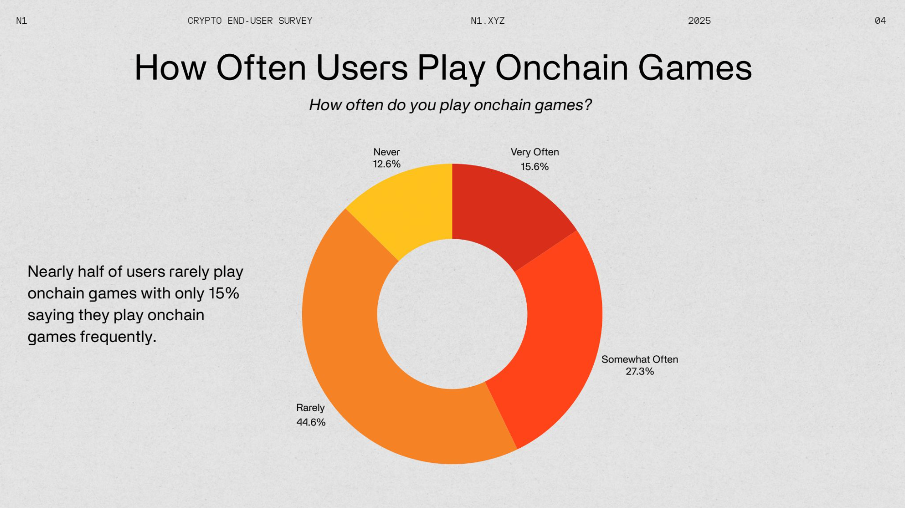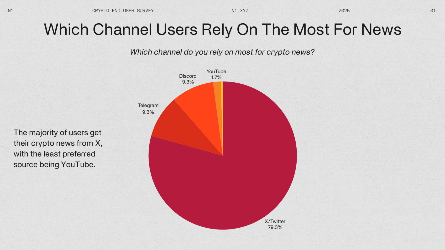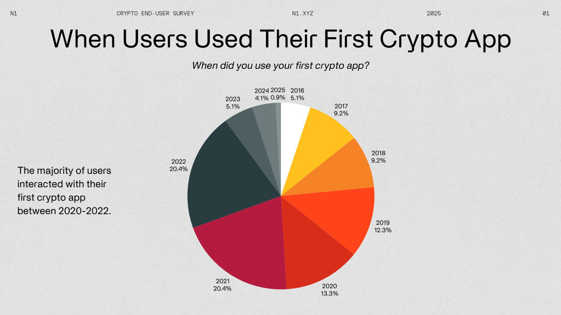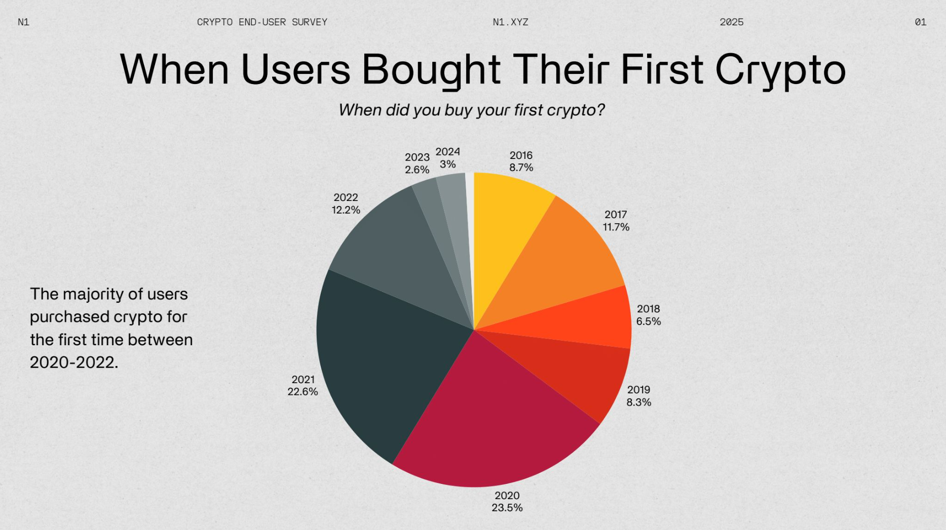 N1 Presents the 2025 Crypto End-User Report. This survey offers valuable insights into how users engage with cryptocurrency, their investment behaviors, and overall sentiment. The crypto space has long prioritized developer reports, with standout studies like the renowned Electric Capital developer report. However, insights into end-user behavior and interests have been noticeably lacking.