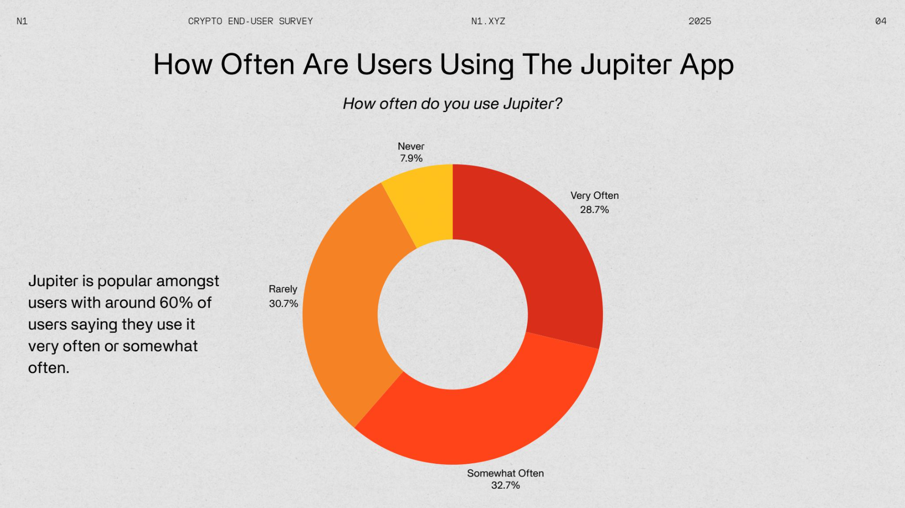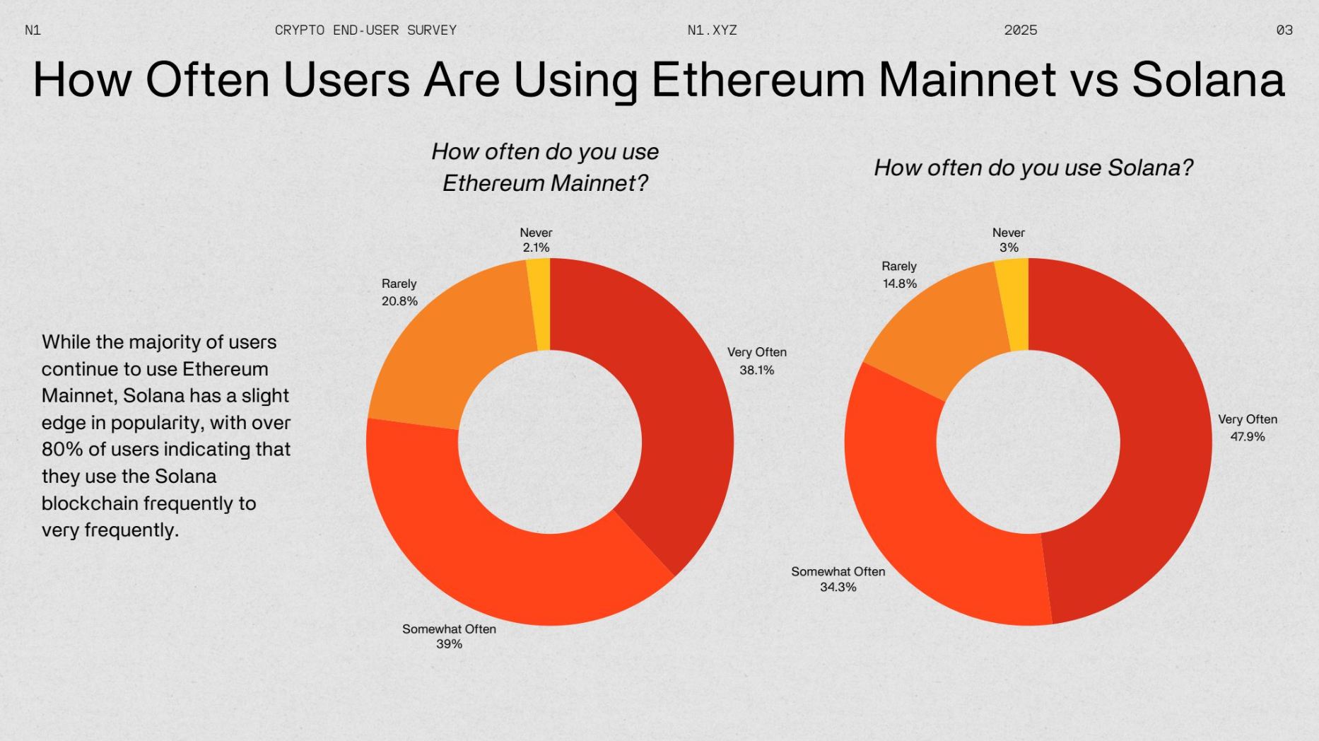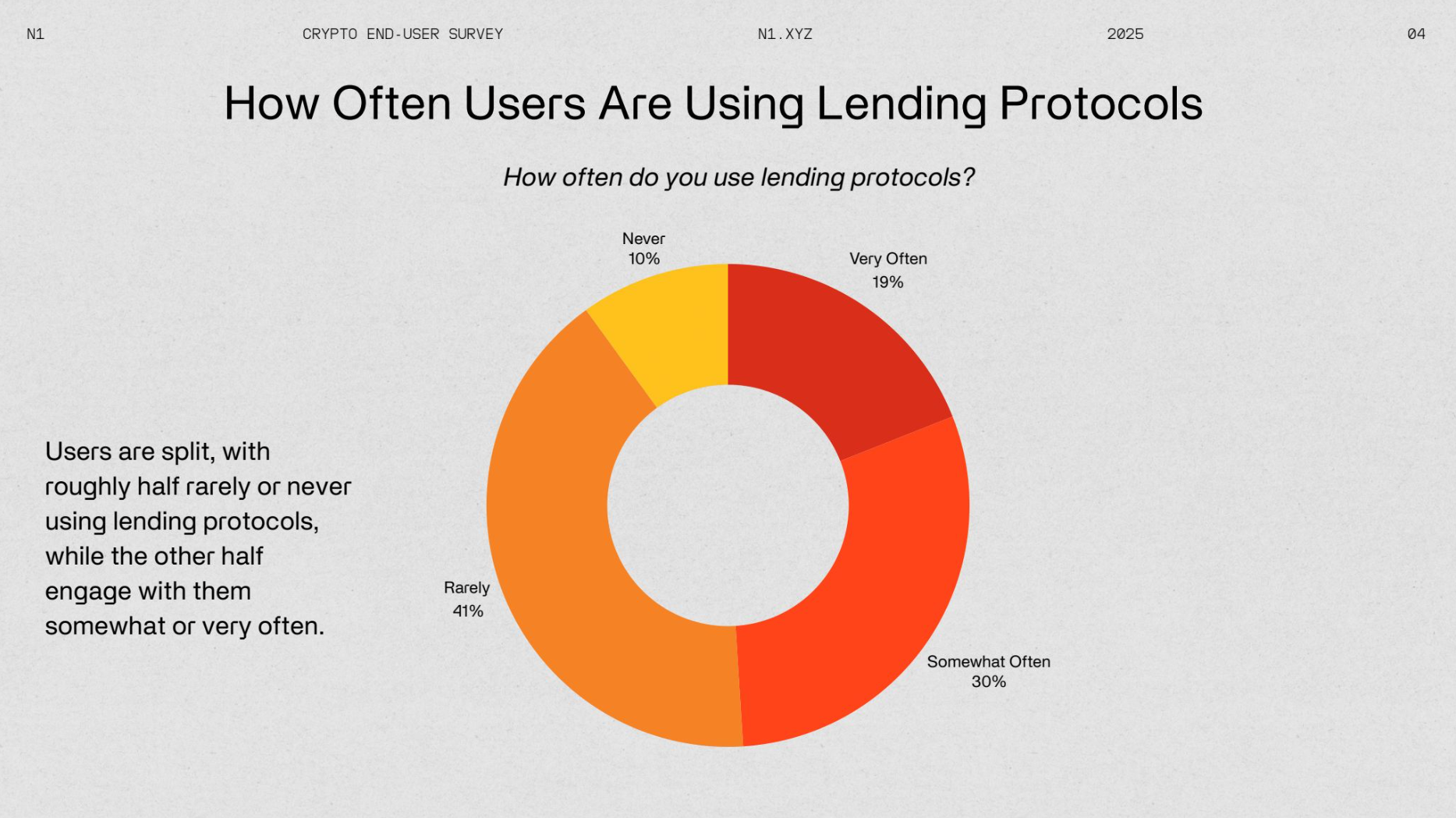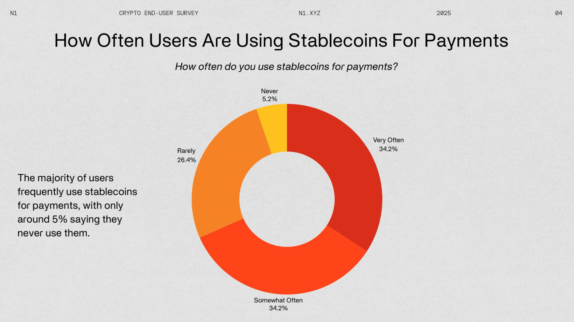 N1 Presents the 2025 Crypto End-User Report. This survey offers valuable insights into how users engage with cryptocurrency, their investment behaviors, and overall sentiment. The crypto space has long prioritized developer reports, with standout studies like the renowned Electric Capital developer report. However, insights into end-user behavior and interests have been noticeably lacking.