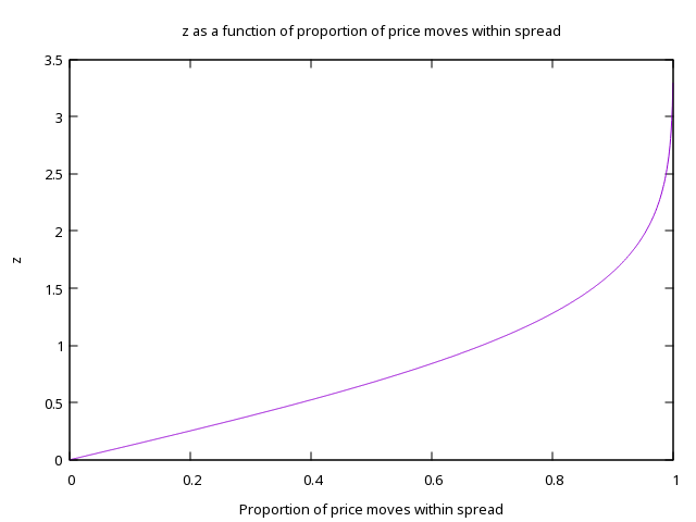 So if we wanted to capture, say, 80% of price movements within the spread, we should pick \(z \approx 1.25\).